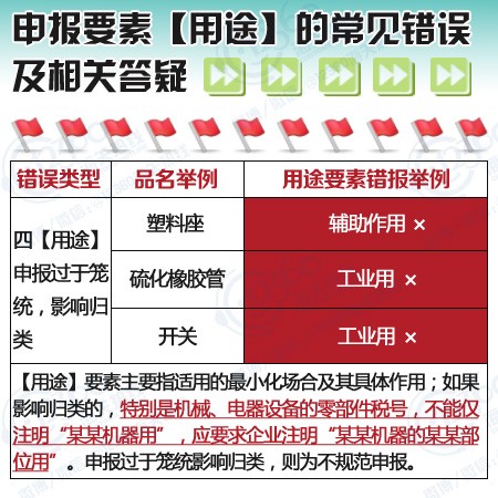 通过前几期同学们对规范申报系列的反馈,小编发现不少同学对申报要素“用途”的掌握仍然不是很好哦~为此小编专门请专家为各位制作了规范申报“用途”小专题,看看申报过程中“用途”的常见错报有哪些,有则改之无则加勉。
