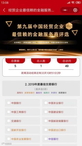第一步:长按识别小程序码进入“2019中国中国经贸企业最信赖的金融服务商”票选平台