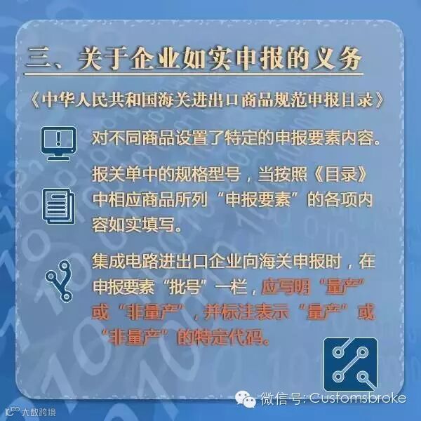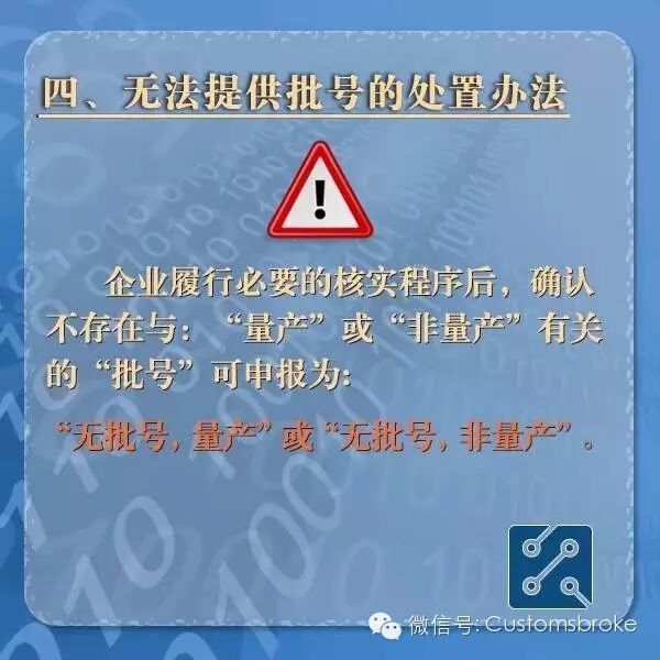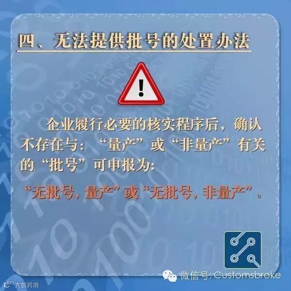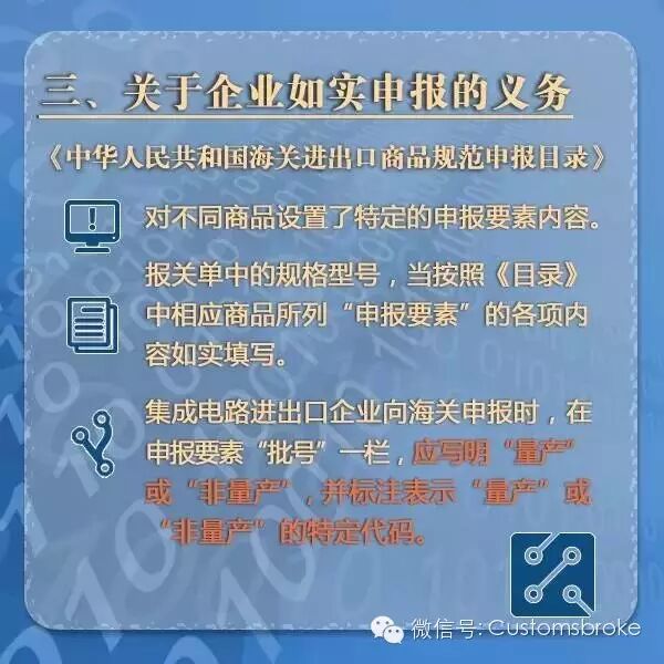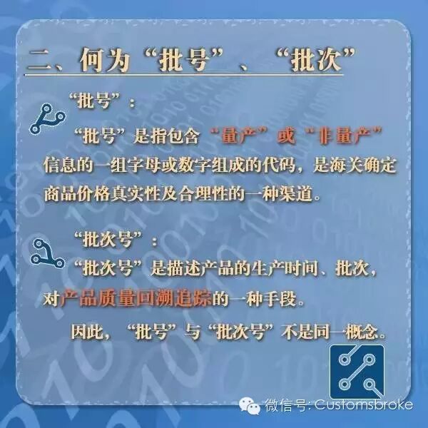 申报要素调整后,有很多小伙伴不清楚,此次集成电路的申报要素新增加的批号、批次应如何申报,这不,12360的小伙伴给出了答案:原来批号要确定产品是量产还是非量产,而批次则是产品质量回溯追踪的一种手段。具体要如何申报,赶紧看图吧↓↓↓