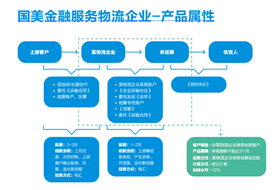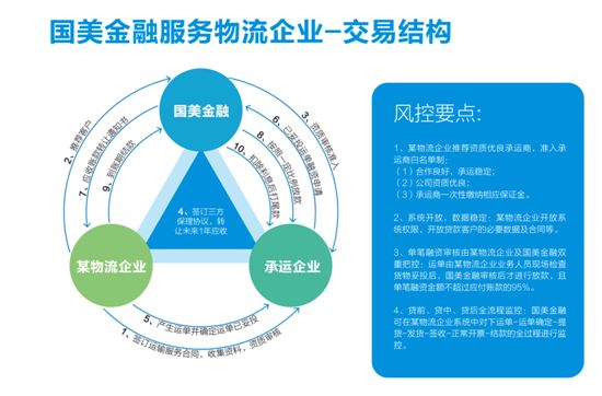 ④ 贷前、贷中、贷后全流程监控:国美金融可在某物流企业系统中对下运单-运单确定-提货-发货-签收-正常开票-结款的全过程进行监控。