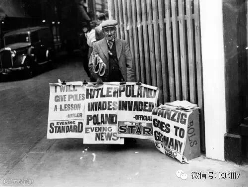 一名报纸经销商正在展示有关希特勒入侵的报道。