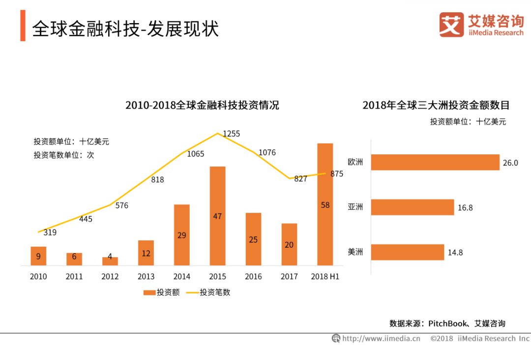 近日,全球领先的新经济行业数据挖掘和分析机构iiMedia Research(艾媒咨询)权威发布《2018-2019中国金融科技专题研究报告》。2018年金融科技成为全球资本青睐的热点产业,发展进入3.0时代。数据显示,截至2018上半年,全球金融科技投资额达580亿元。金融科技在细分领域的应用也得到进一步发展。