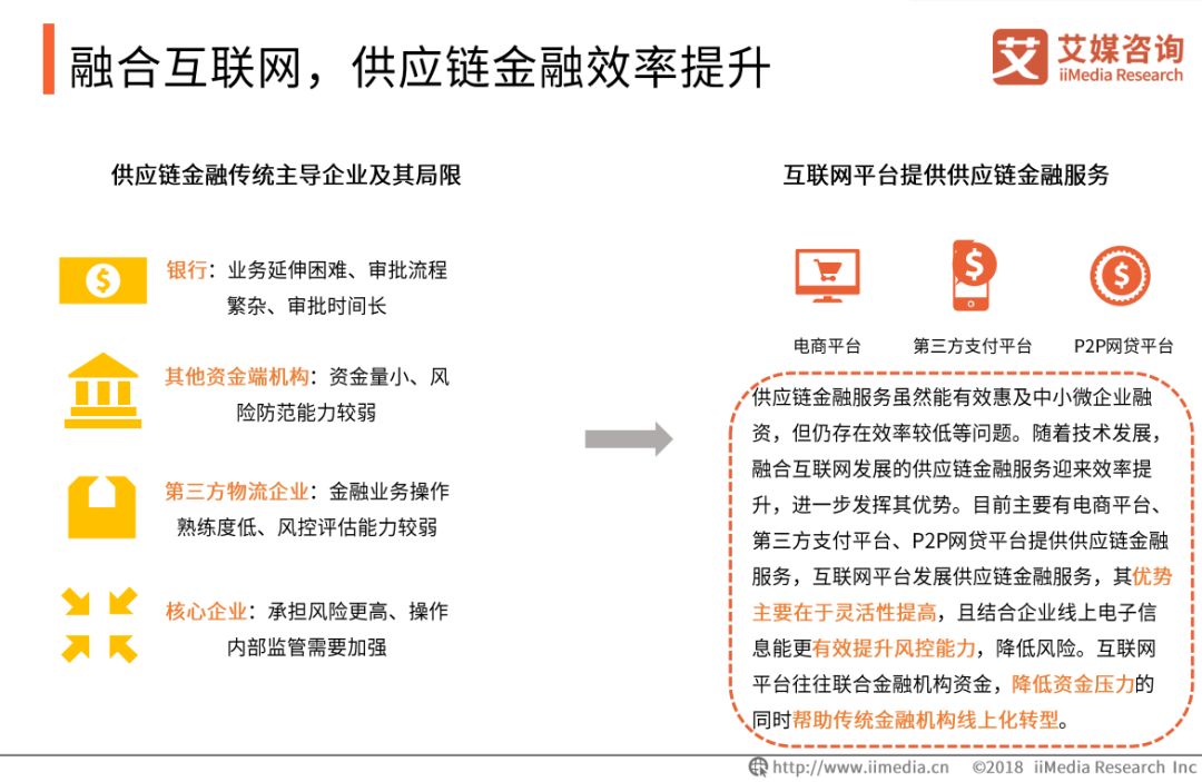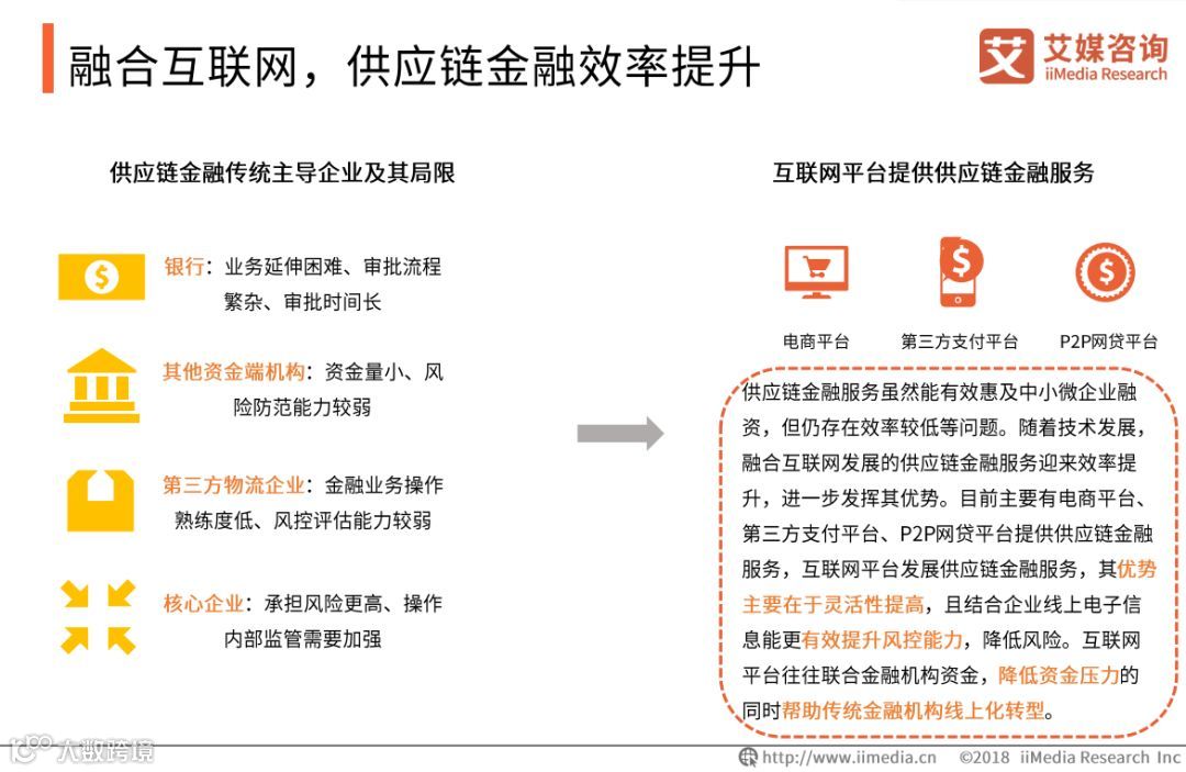艾媒咨询分析师认为,中小微企业是中国经济市场重要组成部分,但该类企业较难满足传统金融服务贷款融资的门槛要求,其发展运营收到约束。供应链金融服务的出现,围绕核心企业整合供应链条,以核心企业信用为链条金融服务提供重点,并能有效掌握上下游企业“三流”(物流、信息流、资金流)信息,能够降低中小微企业授信门槛,有效提高产业链条整体运营效率,促进经济发展。