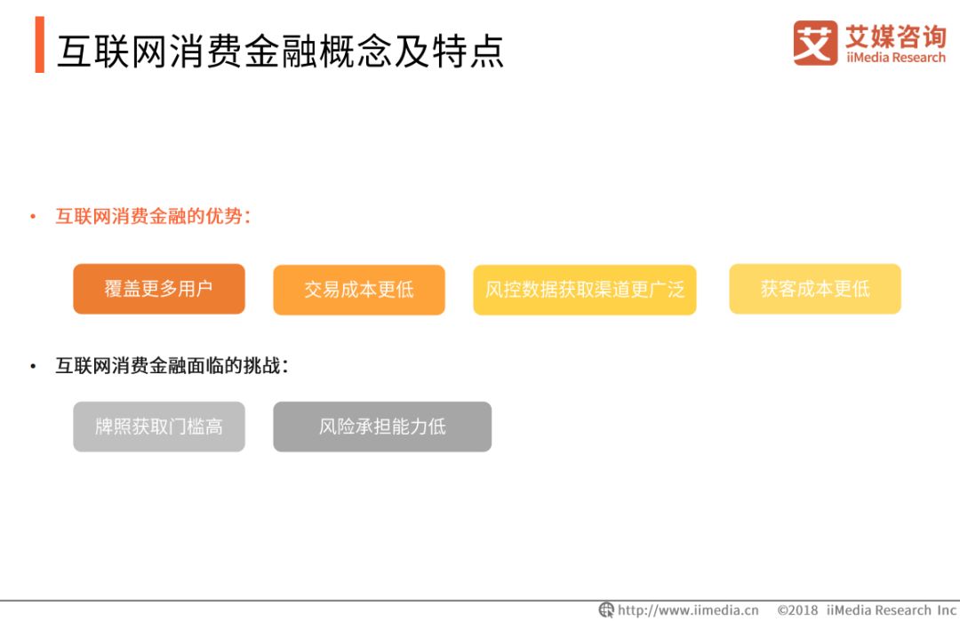 互联网消费金融是在互联网信息技术的基础之上,为满足消费者更高的消费需求、解决原先传统消费金融模式所带来的各种消费限制与不便的金融服务,具体为资金供给方为满足消费者在住房、购物、娱乐、工作等方面不断扩大的需求而通过互联网向消费者提供消费贷款的金融服务模式,主要类型为向消费者提供小额贷款或分期付费。