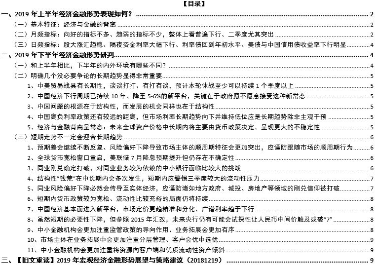 附上我们于2018年12月19日发布的2019年度经济金融形势展望报告的摘要(原文摘录,未做调整),以供参考和对比。