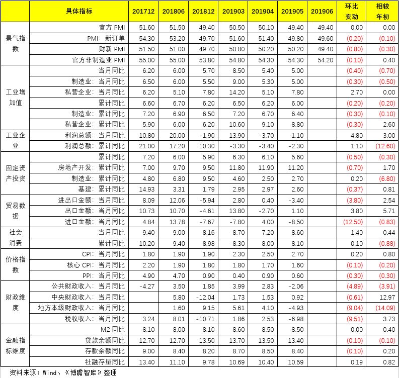 2019年以来,财新PMI、制造业投资、公共财政收入、地方财政收入、进口当月同比、工业企业利润等指标恶化比较明显,特别是二季度以来,整个经济基本面的表现趋于下行特征尤其突出。