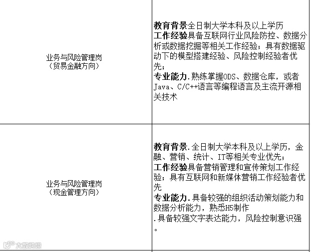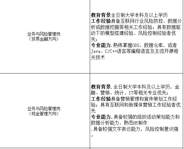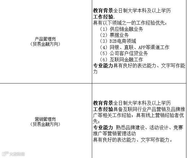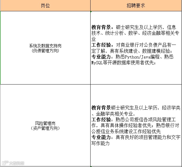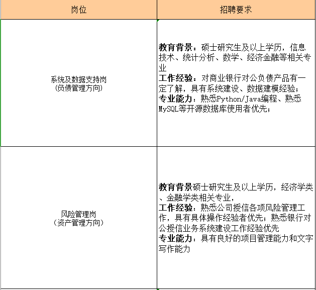 3年及以上商业银行或其他金融机构、互联网行业工作经验