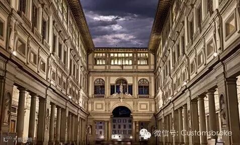 乌菲奇宫,又称乌菲奇画廊,是一幢马蹄形的4层建筑,从外表看实在太过普通,没有大气的门脸,没有华丽的装潢,当你第一眼看过去,只有一种简单自然的感觉,而这不恰恰就是艺术所追求的真谛吗?抛却浮华与造作,回归自然真实,眼前这座人类艺术的宝库,看似简单,实则隐藏着千百年来无数的画家前辈对于人类艺术孜孜不倦的至高追求。每天,成百上千的游客从世界各地赶来,只为了一睹《春》和《维纳斯的诞生》的真容,所有人都会对大师所创造出的每一个栩栩如生的人物啧啧称奇,却很少会注意到另一群人的身影。在画廊中间露天的空地上,三五成群的人们坐在一起,手中拿着画笔和颜料,一幅幅美丽的图景就这样被慢慢地勾勒了出来。或许这些画没什么艺术价值,或许这些画卖不出几个钱,或许这些画永远不会像波提切利、乔托、提香或拉斐尔的大作一样被装进旁边的那个画廊里,可正是这些穷困潦倒、身处社会底层的“平民画师”们,才让我真真切切感受到了这座城市所散发出的无所不在的艺术气息,也正是他们执着的追求,让文艺复兴的火种在历史的长河中得以继续传承下去,这种对艺术的不懈追求精神,远比这里珍藏的任何一件宝物都珍贵啊!