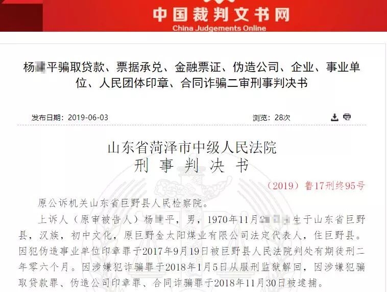日前,自裁判文书网获悉,山东巨野县一起骗取贷款、伪造公司印章和合同诈骗的案件被曝光。