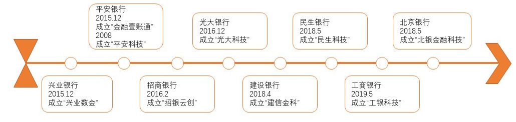 截至目前,已有兴业银行、平安银行、招商银行、光大银行、建设银行、民生银行、工商银行、北京银行8家商业银行已先后成立金融科技子公司。