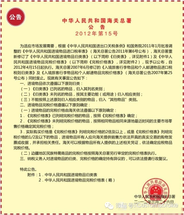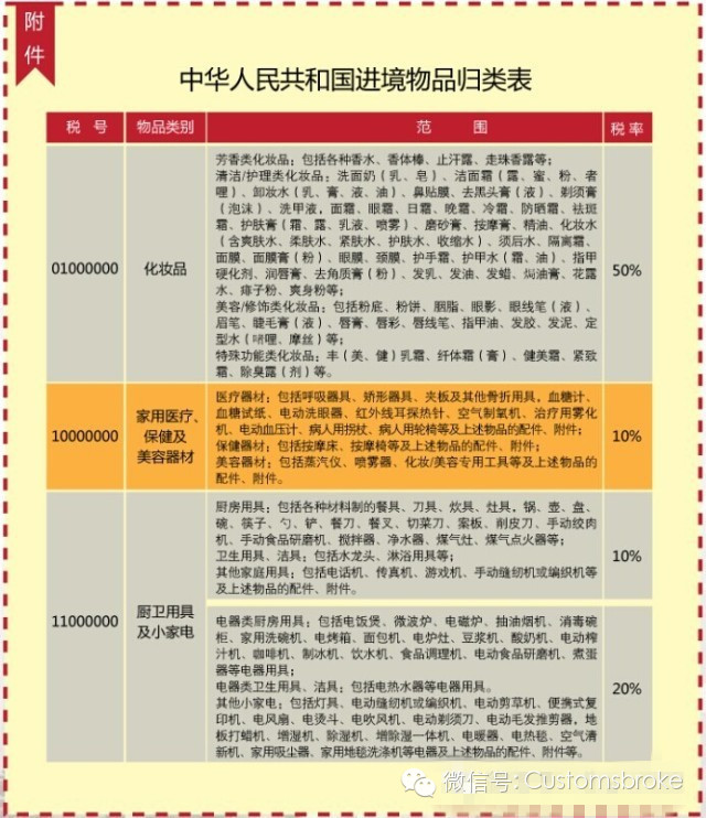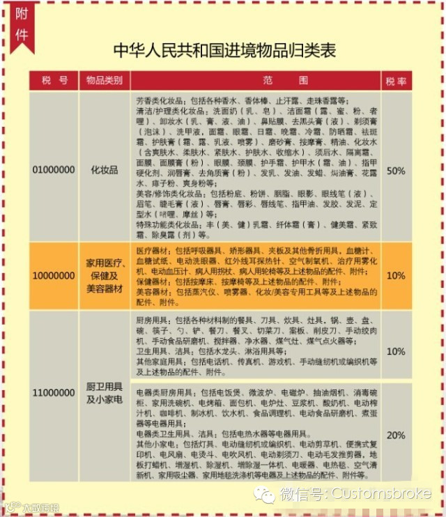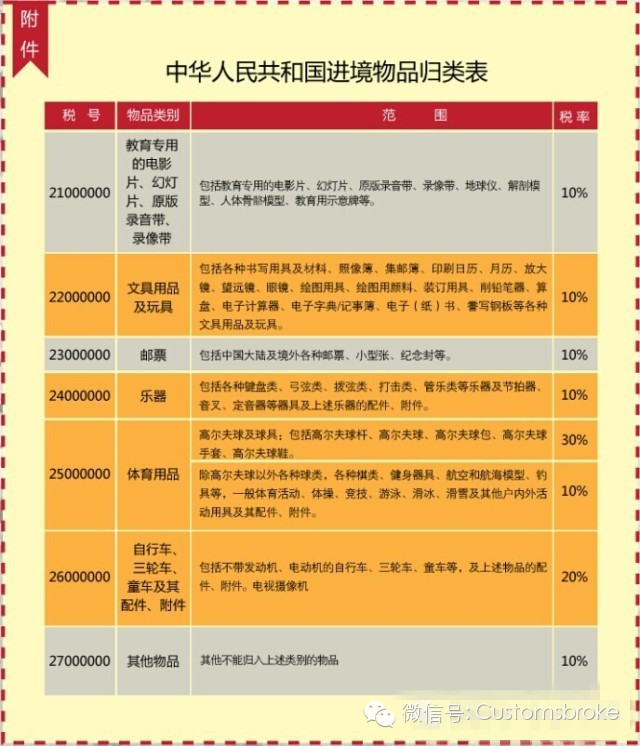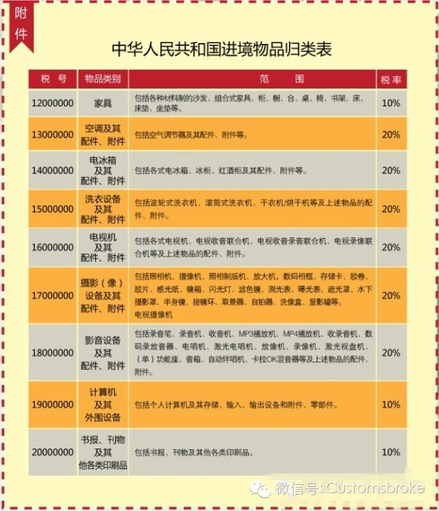 奶粉如何征税,iPhone如何征税?对于行邮(即作为行李物品和邮寄入境的物品)入境的物品的征税,海关是有固定的税率表的。不同物品的税率是不一样的,总体来说,划分成4个档次,分别是:10%、20%、30%、50%,这些在海关总署2012年第15号公告里都有列明。如下图所示: