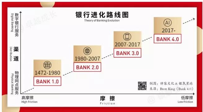 其次我们看银行进化路线图,结合各个时代表现: