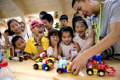 杭州定格文化创意有限公司致力于木偶定格动漫制作,有别于3D或纯绘画的动画技术,定格动画每一个场景出现的人物、道具,都对应着工作人员精心制作出来的实物。小候鸟们瞬间被一个个精巧的木偶和场景吸引住了目光,围着讲解的大哥哥伸出小手,迫不及待的想要摸一摸动画里出现的小汽车、小玩偶。同时,定格文化旗下的木木部落提供了五颜六色的木制玩具部件,在设计师大哥哥的引导下,小候鸟们迅速掌握了木玩拼装的基本技巧,充分开动小脑筋,三人一组团队合作,拼装出一个个充满想象力的木玩模型。有坦克、吊车、小飞机……小候鸟们兴奋地向哥哥姐姐们解说着自己的作品,眼神里闪烁着自信的光芒。