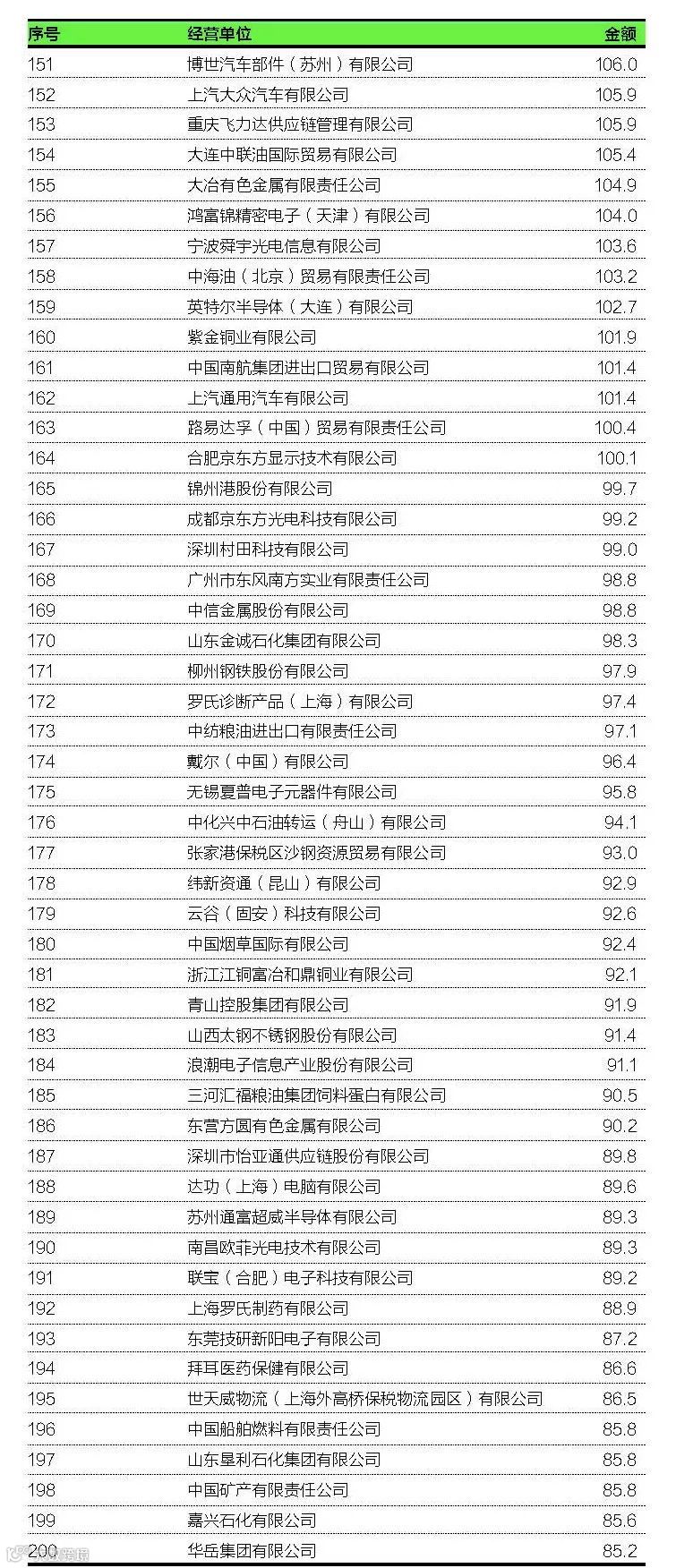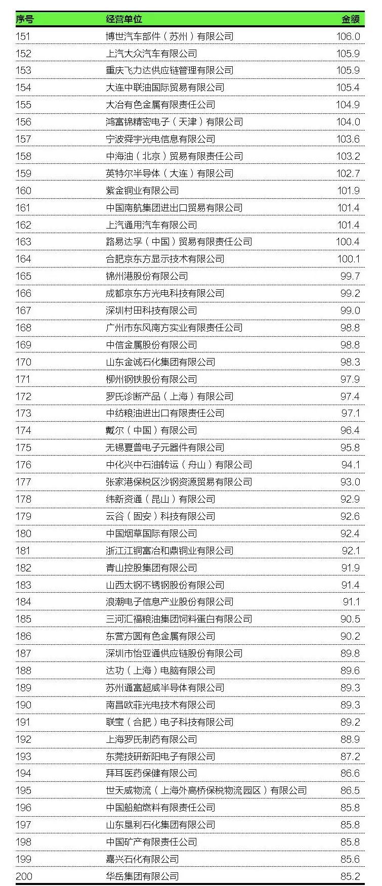 2018年,我国外贸进出口规模首次超过30万亿元的整数大关,达到30.5万亿元的新高度,比2017年增长9.7%,为全球贸易发展提供了强劲动力。其中,作为我国进出口规模最大的200家企业,2018年外贸合计实现进出口8.2万亿元,增长21.7%,比当年我国外贸进出口整体增速高12个百分点,对当年进出口增长贡献率达54.3%,撑起了我国外贸增长的“半壁江山”。