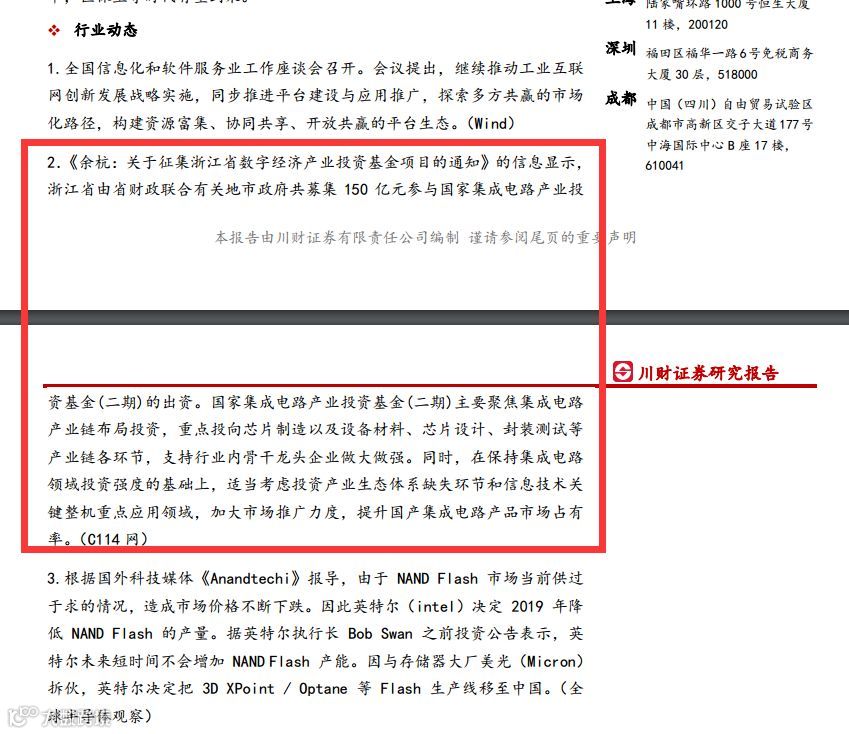 根据川财证券研报,《余杭:关于征集浙江省数字经济产业投资基金项目的通知》的信息显示,浙江省由省财政联合有关地市政府共募集 150 亿元参与国家集成电路产业投资基金(二期)的出资。
