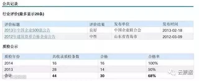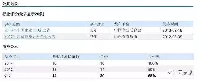 公共记录模块主要体现第三方机构对于目标公司的评价、奖励、惩罚、检测等,负面信息可直接提现目标公司存在的风险。
