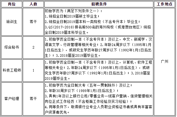 二、招聘职位及条件