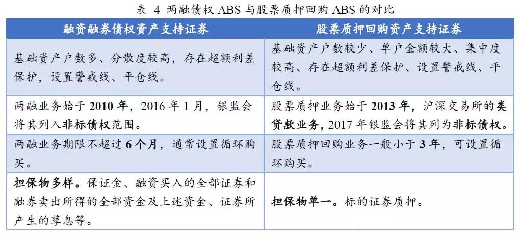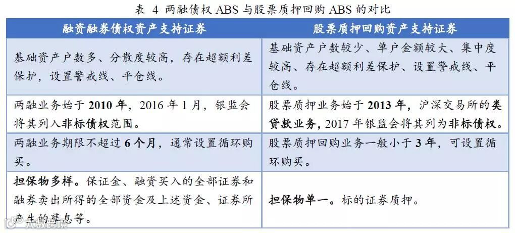 两融债权资产支持证券和股票质押回购资产支持证券特征对比