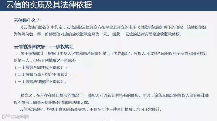 云链金融平台的云信流转融资,本质上为核心企业应收账款在平台上的在线流转和融资。即平台采用信息化系统,配合电子签名技术,把非标准化的“应收账款”封装成了标准化的“电子债权”,实现了整体业务的闭环处理。风控手段方面则是产业链上中小企业借用了核心企业的信用实现增信。