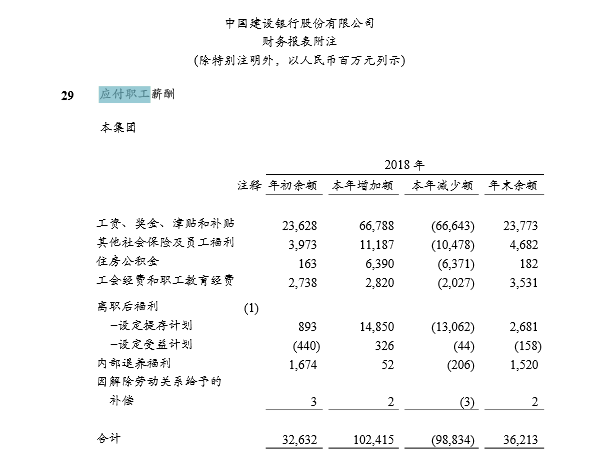 搜狐财经"公司深读”根据建设银行2018年披露的数据,2018年全年,建设银行支付给职工及为职工支付的现金为988.34亿元,期初应付职工薪酬为326.32亿元,期末应付职工薪酬为362.13亿元,以上述数据计算,建设银行在过去一年为员工支付的各类工资、福利等金额为1024.15亿元。