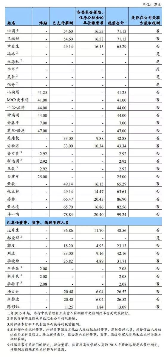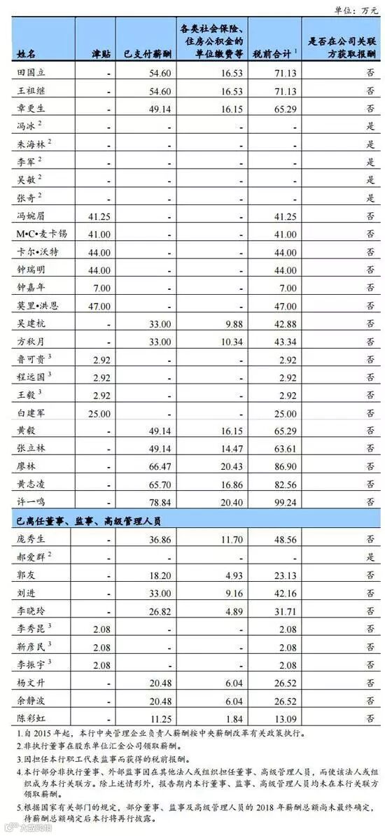 高管薪资方面,年报显示,2018年建设银行董事、监事和高级管理人员的薪酬为1167万元。其中,建设银行董事长田国立薪酬税前合计71.13万元,建设银行行长王祖继薪酬税前合计71.13万元。