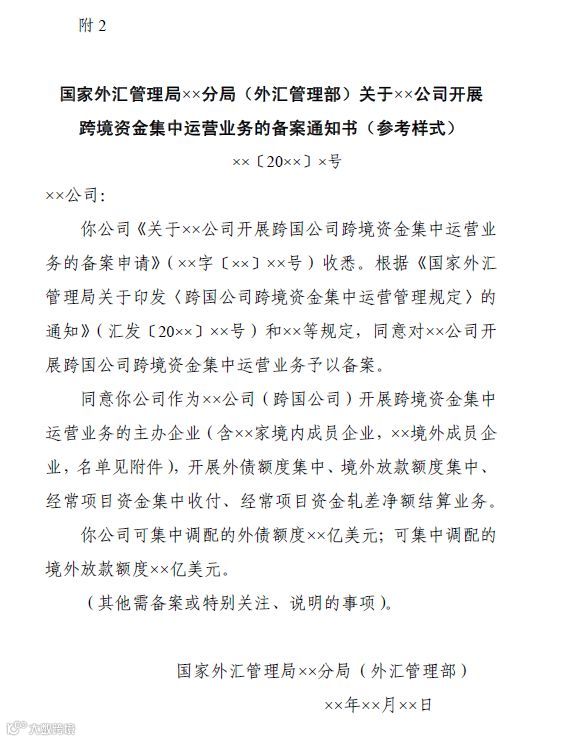 2.跨国公司对主办企业开展跨境资金集中运营业务的授权书;