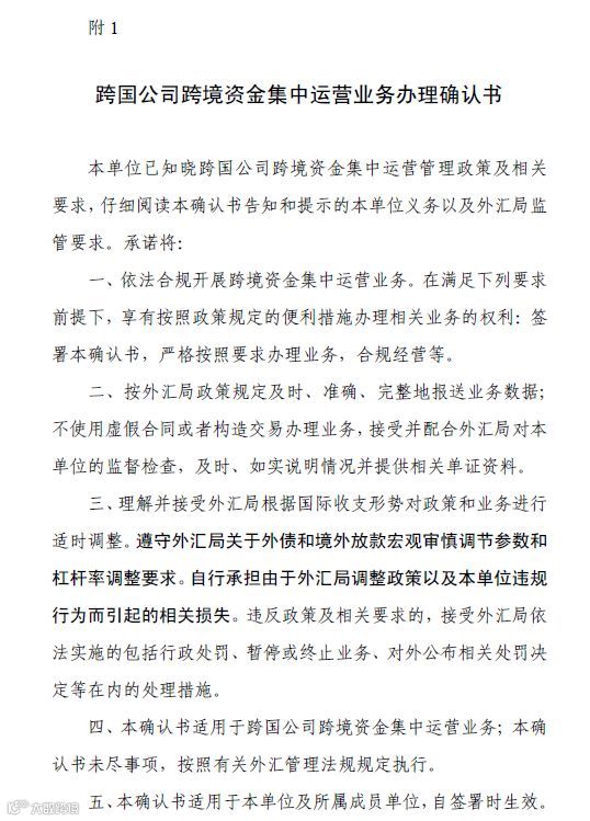 3.主办企业与合作银行共同签署的《跨国公司跨境资金集中运营业务办理确认书》(见附 1);