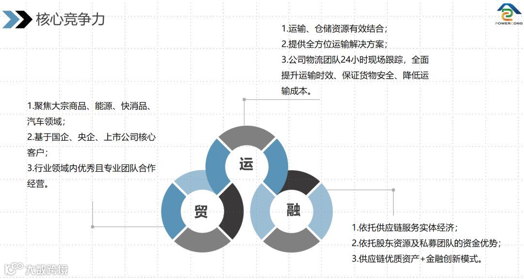 股东及核心管理团队拥有多行业供应链资源,熟悉供应链体系运作流程,(中辉)大仓同时针对能源、快消品、汽车等几个行业板块提供涵盖物流、货物交付、融资及结算等环节的全程供应链资源整合服务及解决方案。