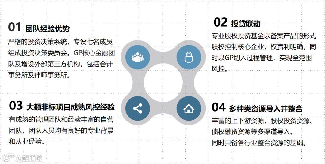 2、投融需求、专业对接:500+资金方,10万+资产方,优质资源企业优先对接;