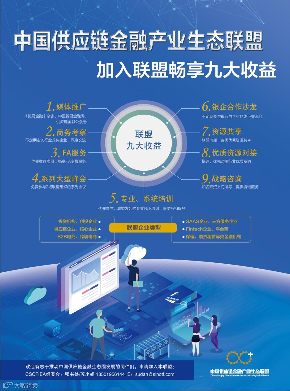 “中国供应链金融产业生态联盟”(以下简称“联盟”,英文名称为 China Supply Chain Finance Industry Ecological Alliance)是多家机构共同发起设立的供应链金融与产业链领域的一个非官方、非营利性,开放式的协同创新组织,由生态圈内的企业和重要社会影响力的人士组成,成立于2017 年04 月21 日。