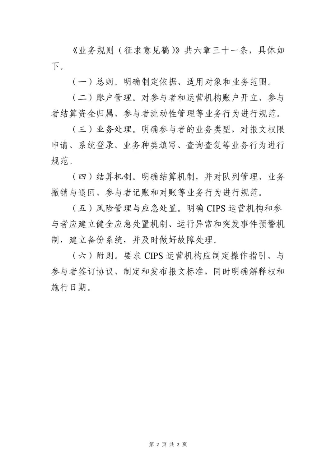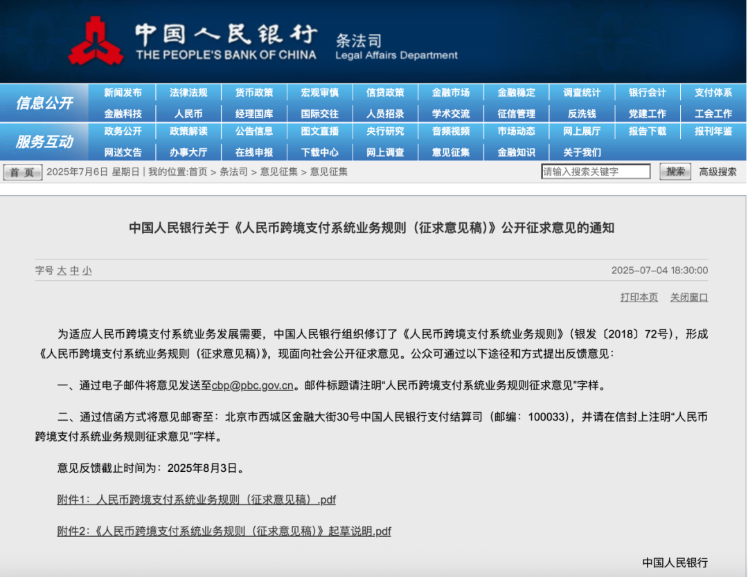 中国人民银行关于《人民币跨境支付系统业务规则(征求意见稿)》公开征求意见的通知