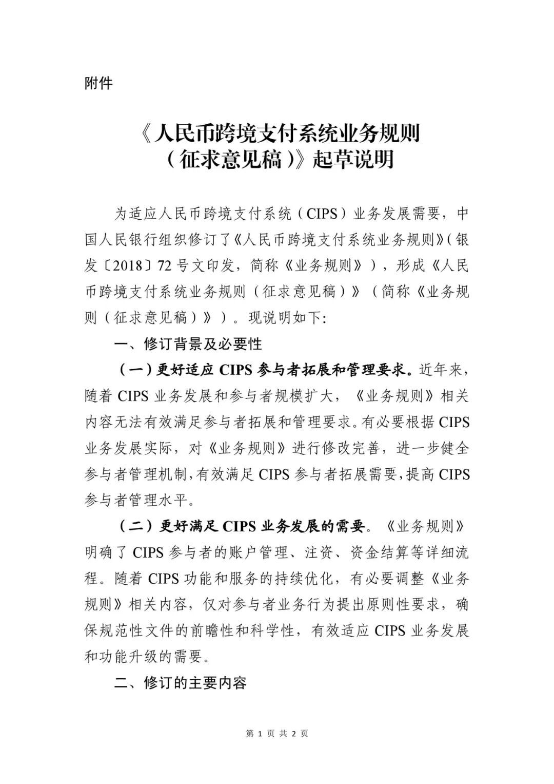 附件2:《人民币跨境支付系统业务规则(征求意见稿)》起草说明.pdf