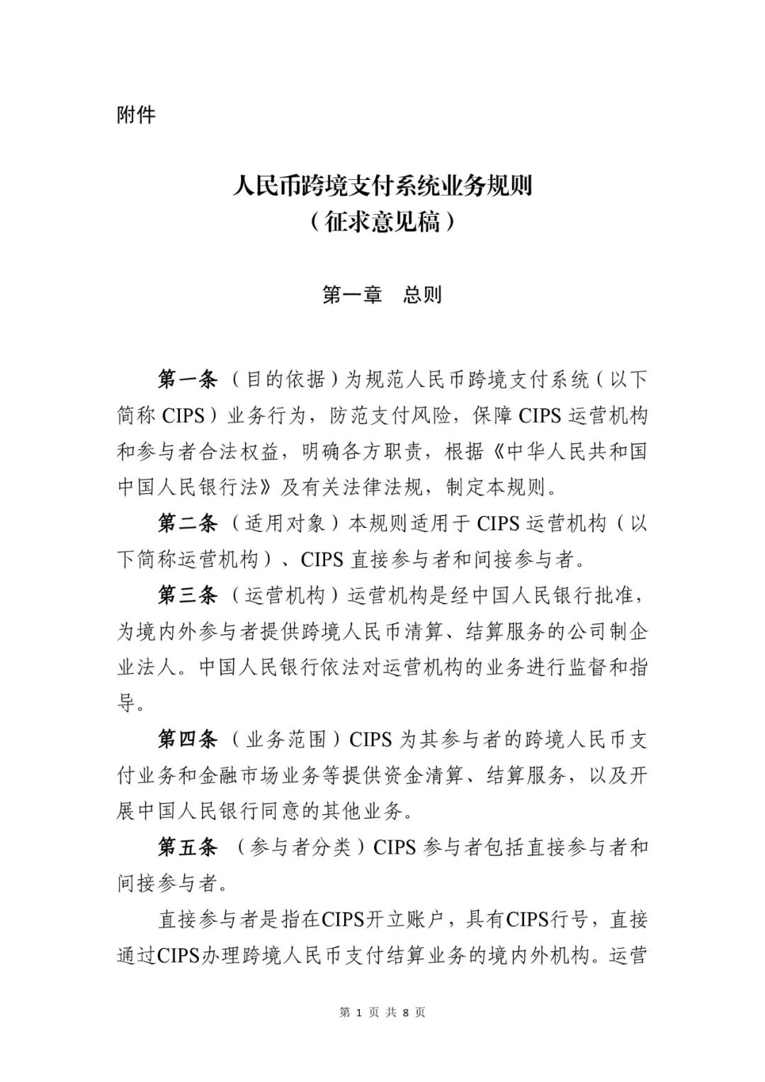 附件1:人民币跨境支付系统业务规则(征求意见稿).pdf