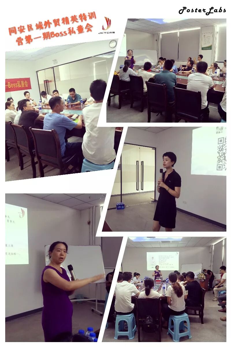 2019年8月7日,同安区域外贸精英特训营第一期之Boss私董会,在同安火热开班啦!宁姐倾情分享,拓宽老板们的思维局限,相互探讨的形式,解答心中所惑,让大家在学习的过程中相互成长。说出来,学下去,晒出来!让我们一起回顾当天的精彩!