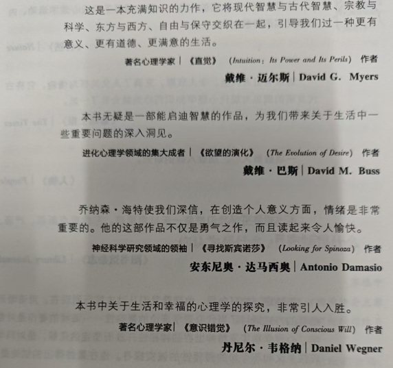 6.寻找生命的意义:最后,海特引导读者思考生命的意义,以及如何在日常生活中找到个人的使命和目的。