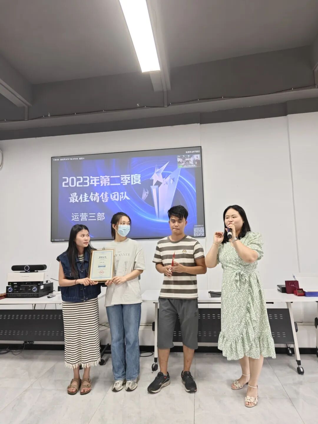 恭喜他们,有请Rainie为获奖伙伴颁奖荣誉证书和奖项红包,一起合影留念,记录这重要的时刻!