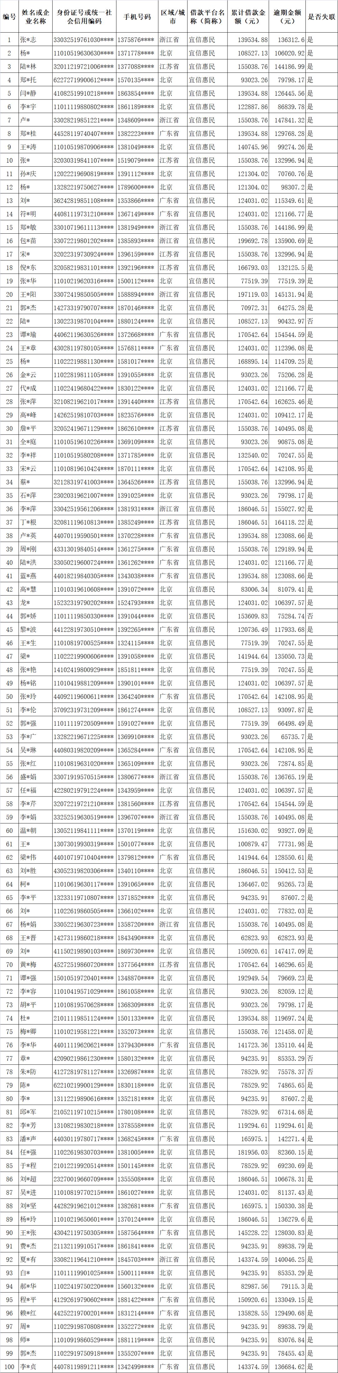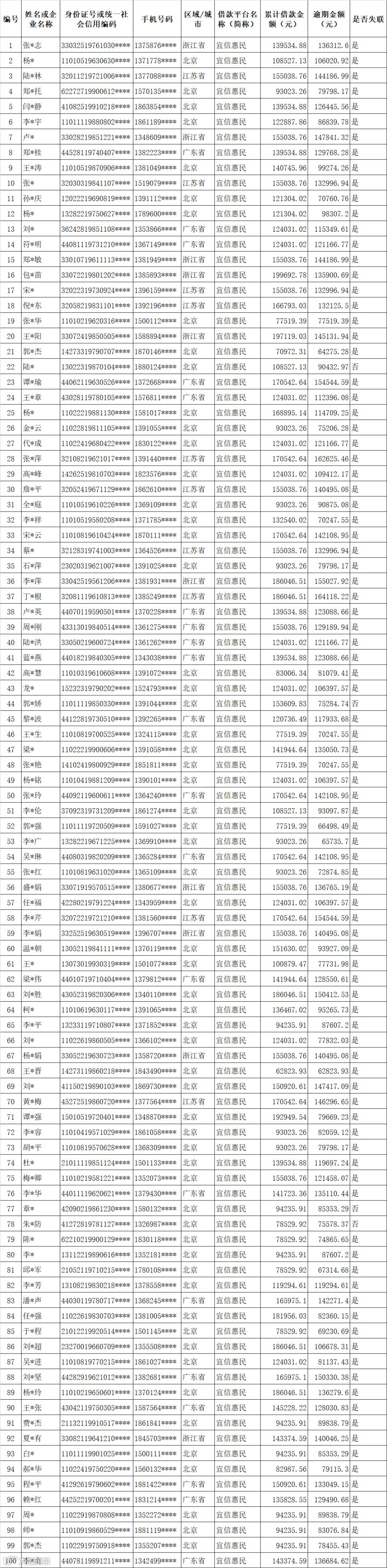 联盟首批公示的网贷平台逃废债借款人名单如下: