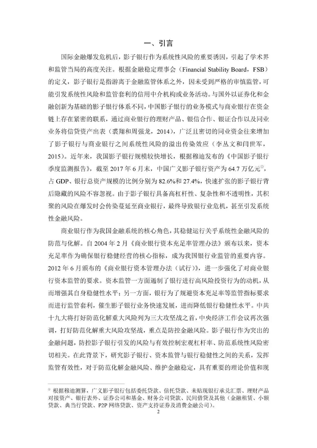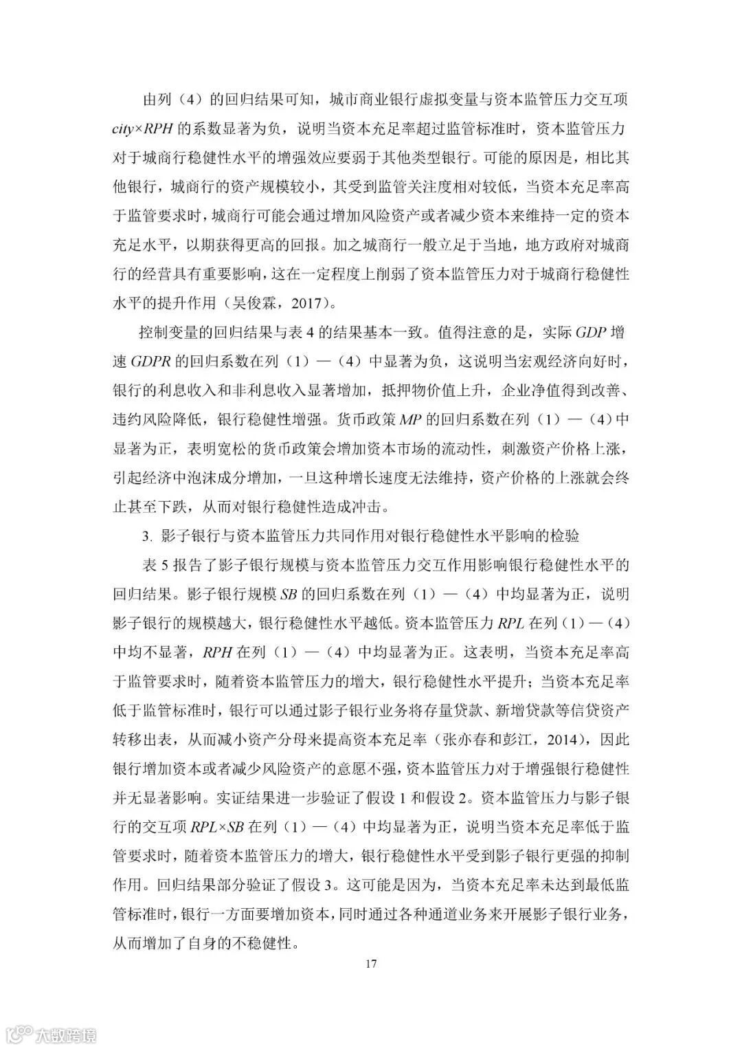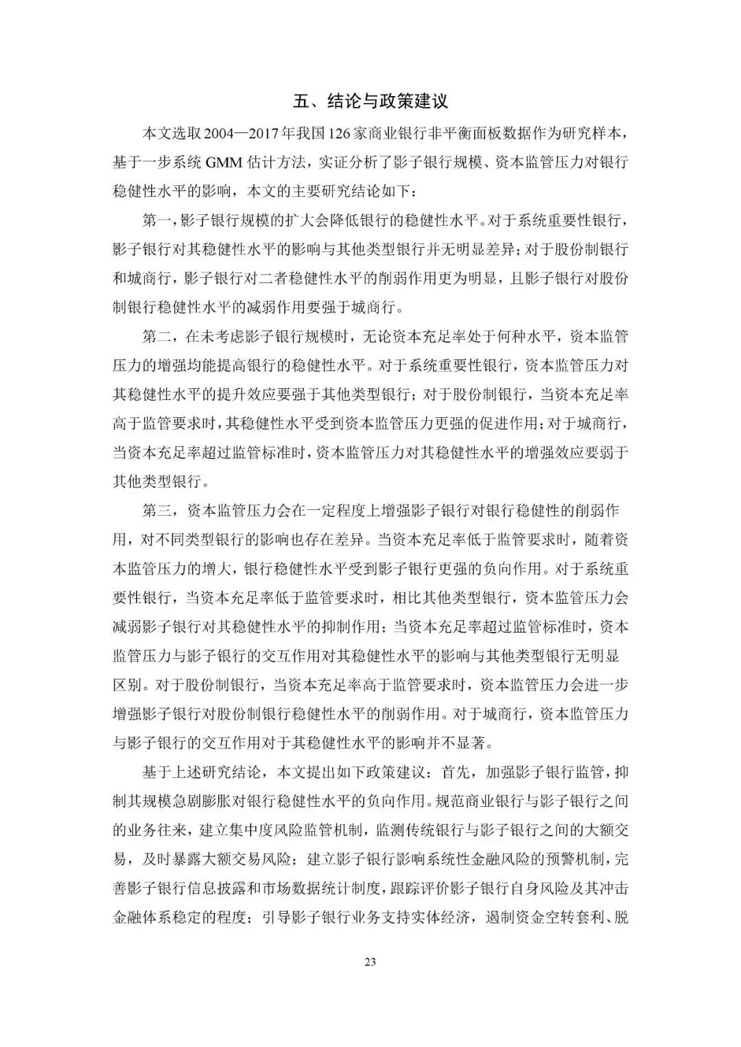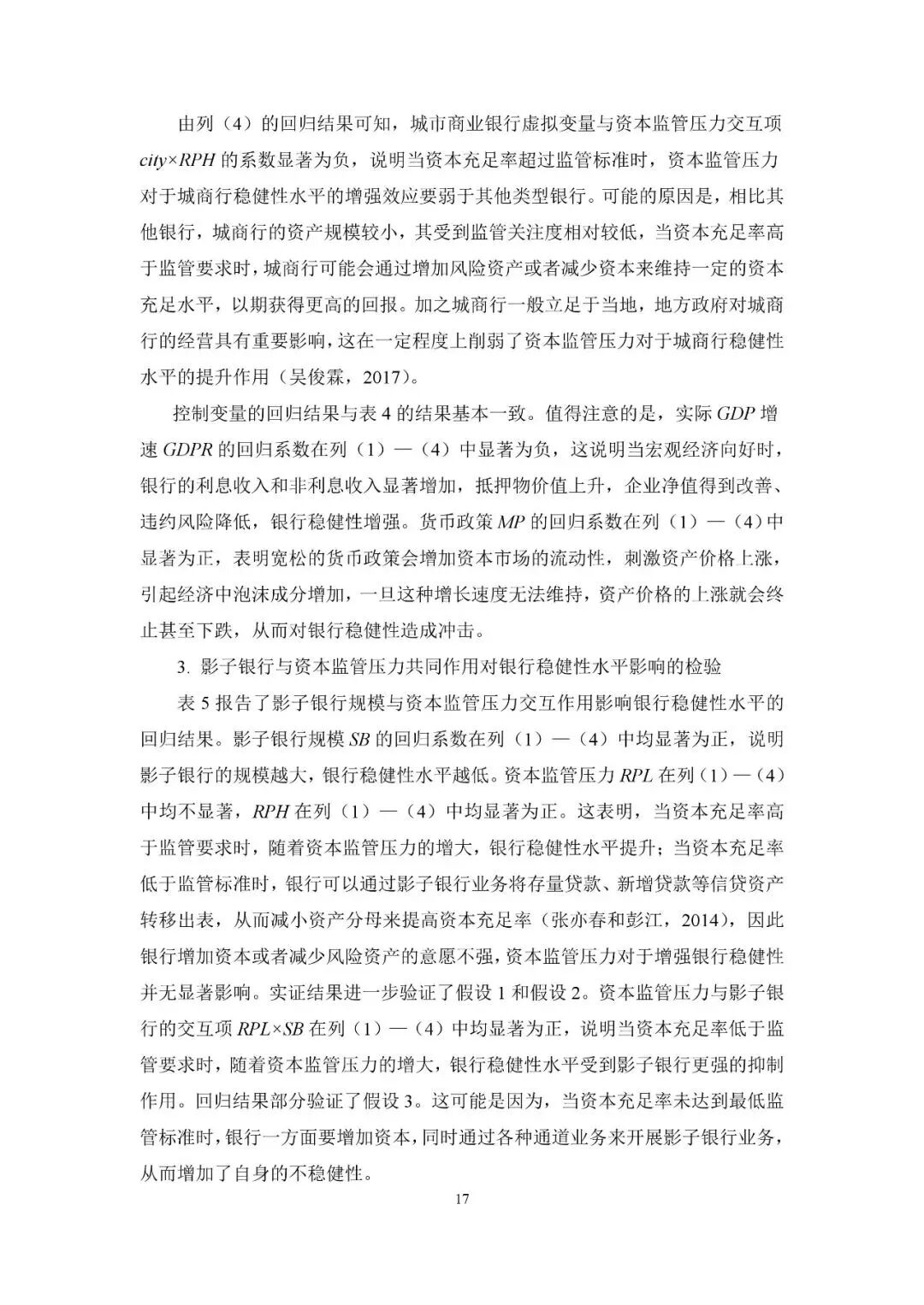 建议加强影子银行监管,抑制其规模急剧膨胀对银行稳健性水平的负向作用,持续完善差异化监管规则,强化资本与杠杆率监管。