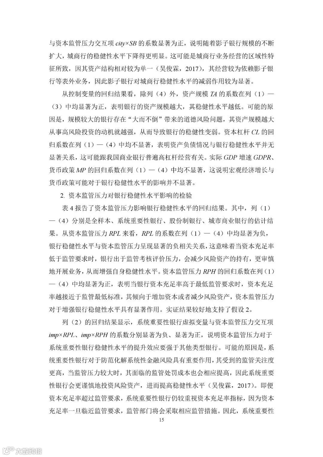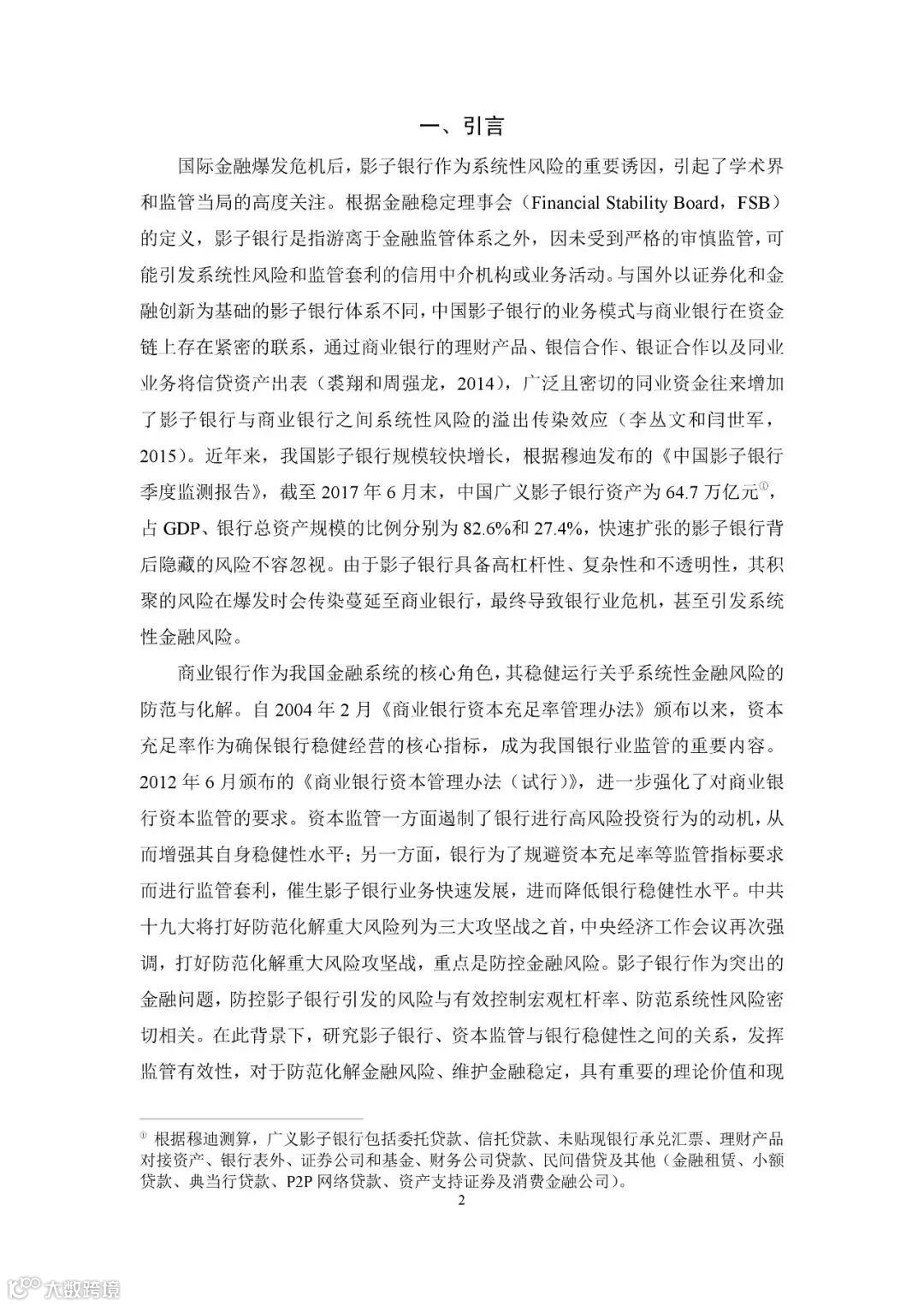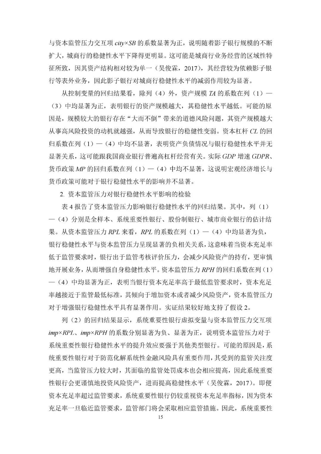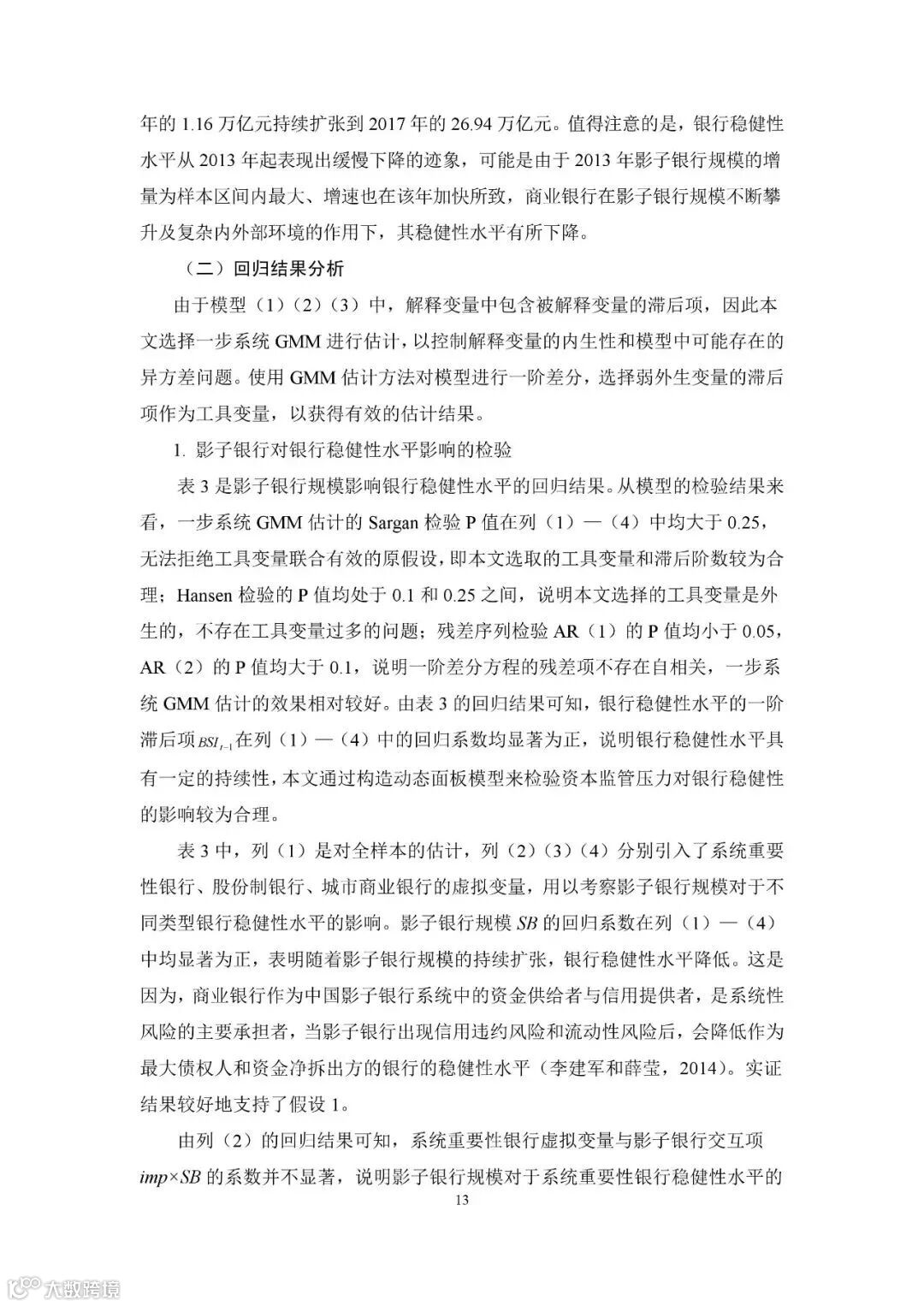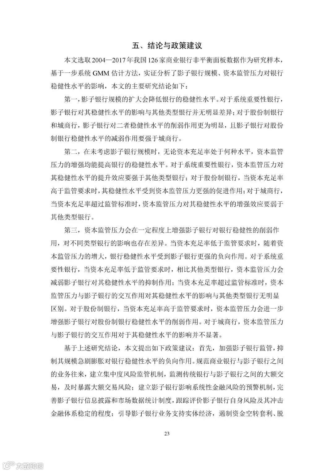 建议加强影子银行监管,抑制其规模急剧膨胀对银行稳健性水平的负向作用,持续完善差异化监管规则,强化资本与杠杆率监管。
