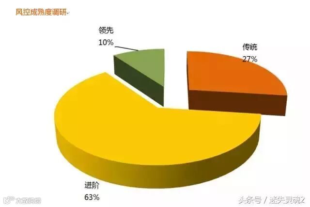 调研结果显示,10%的企业已经建立了领先的风控系统和风险数据库,并以此为基础利用大数据分析技术构建了风险预测模型。63%的企业正在将数据分析、IT技术与传统风控流程进行融合进而提升风控能力。仍有27%的企业依赖传统的风控方法和工具,如下图所示。