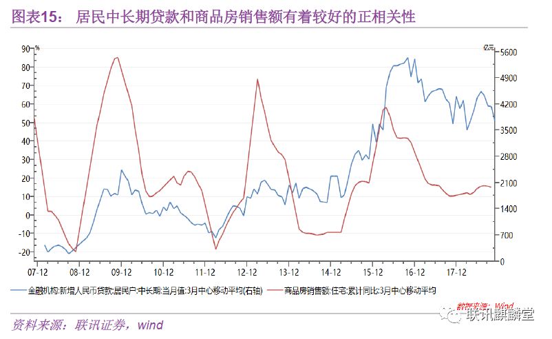 (2)居民中长期贷款主要以个人住房按揭抵押贷款为主,和地产销售存在着较强的相关性,所以在分析这一项时,我们常和地产政策与形势相联系。