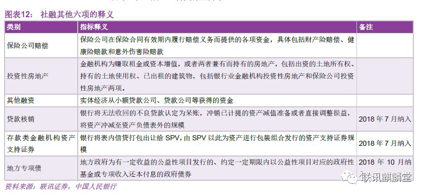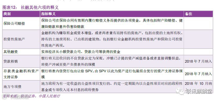 主要包括私募基金对企业部门的股权投资、P2P和股权众筹等类别,他们属于金融体系对实体的资金支持,但在社融指标创建之初,这些类比的数据可得性较弱,规模较小,因此被舍弃忽略了。长期来看,有加回去的必要。