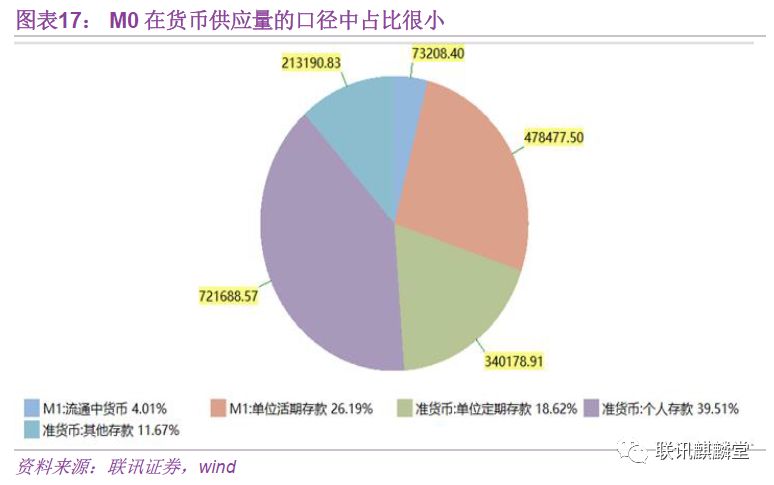 M1是流动性次于M0的货币,等于(M0+单位活期存款),其中单位包括“企业、事业机关、部队及其他团体”。