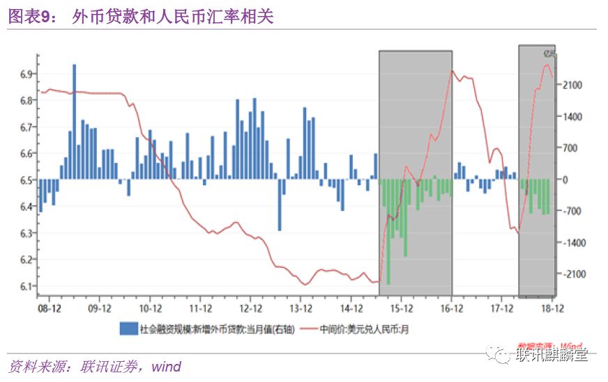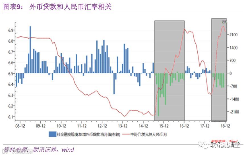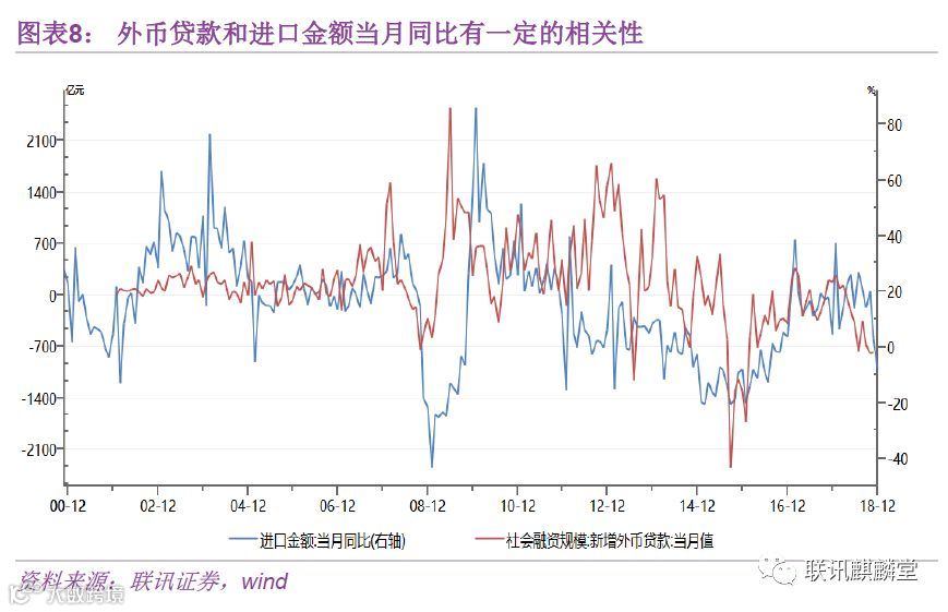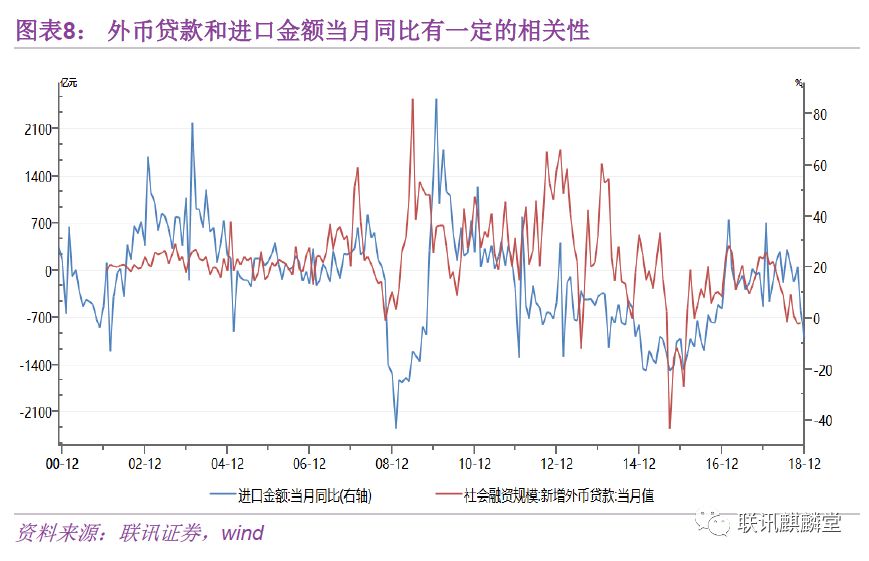 从图8来看,我们也能看到进口金额当月同比增速与新增外币贷款规模存在明显的正相关性。