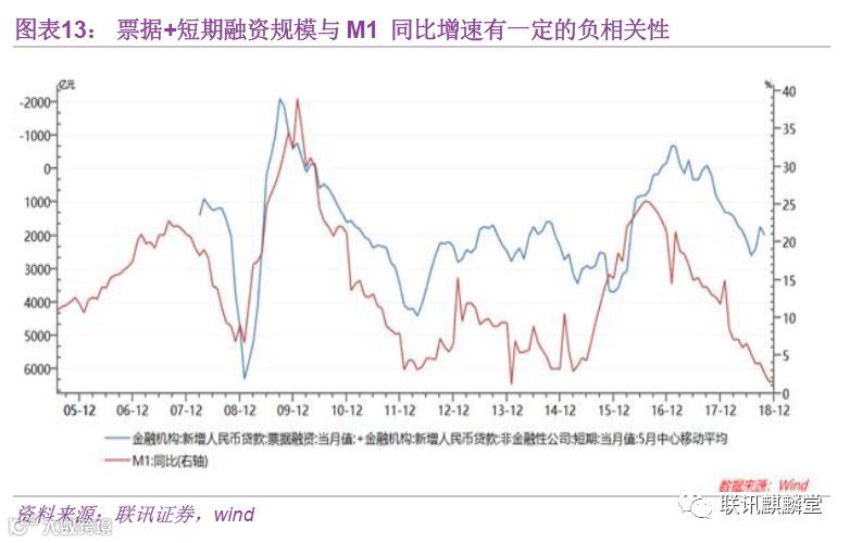 从历史数据上看,两者合计新增规模与M1同比有着一定的负相关性。