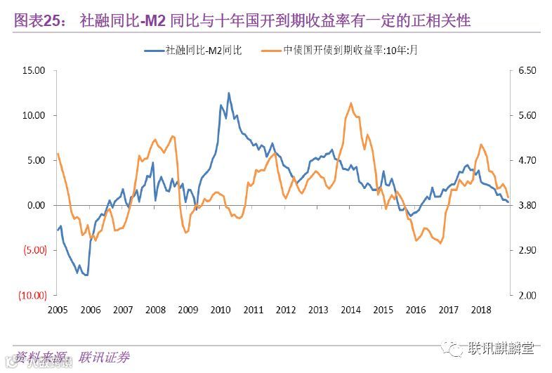 所以,我们能看到(社融-M2)增速之差和十年国开收益率有着一定的正相关性。