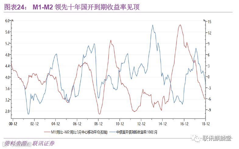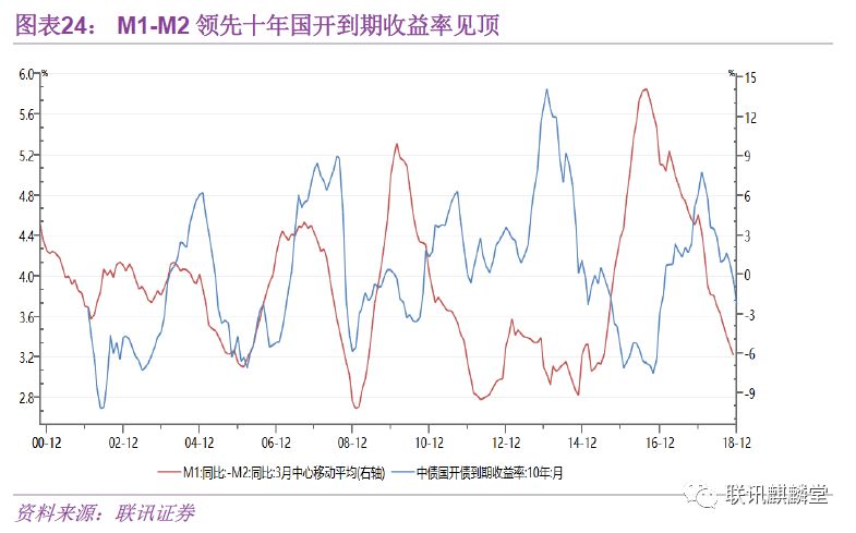 我们以10年国开作为债券市场收益率的代表。从历史数据来看,M1、M2剪刀差见顶领先10年期国开顶部最长是16个月,多数时候是10个月。