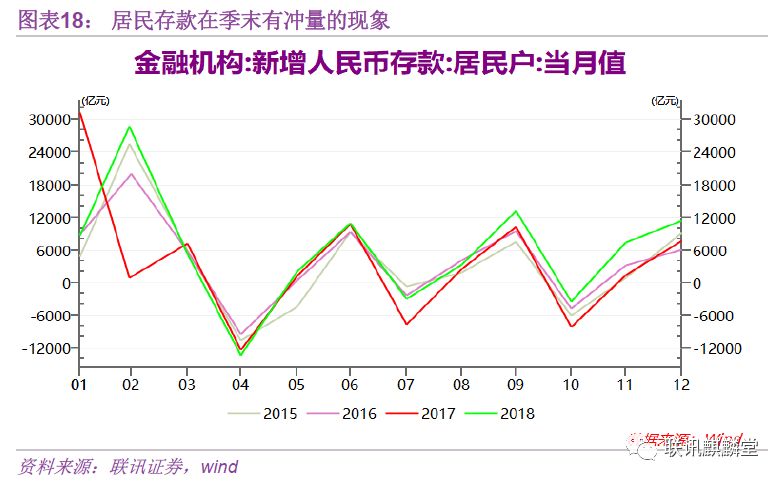 季节性因素的内涵很丰富。一方面和贷款一样,每个季末银行内部都会有存款规模考核,所以每个银行到了季末的时候,都会提高揽储的力度,增加表内的居民或企业存款,比如有些银行会将到期理财暂时转入表内做存款等。