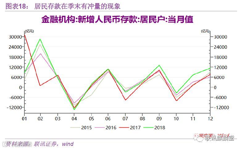 另一方面,存款内部有时也会有明显的转移现象。比如在春节前,很多企业会发年终奖,所以我们会看到在1月份或2月份,企业端的存款规模大幅减少,而居民端的存款规模会有很明显的上涨。