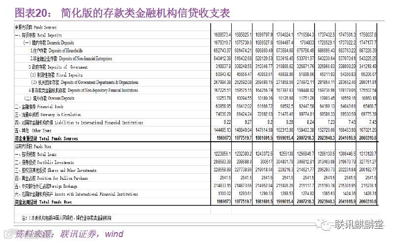 这主要是因为:第一,与其他存款性公司的资产负债表相比,金融机构信贷收支表更加简洁直接易懂,在负债端直接给出了“各项存款”、资产端整合后只留下了六个大项,便于分析。